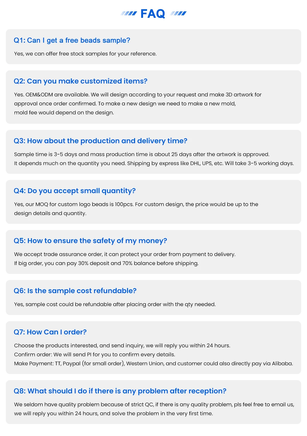 We have strong, long-term and stable professional designers and professional workshop management personnel.