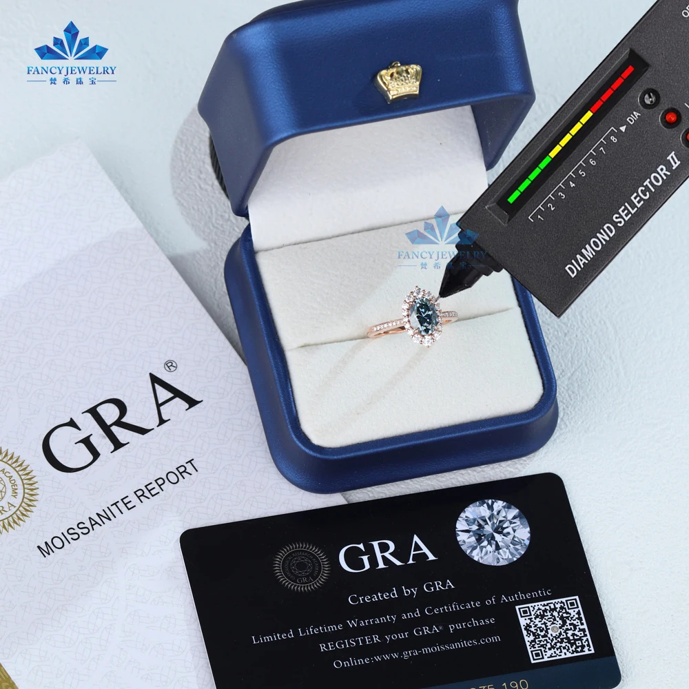 Main Moissanite: 1.5CT-6x8mm Blue grey moissanite