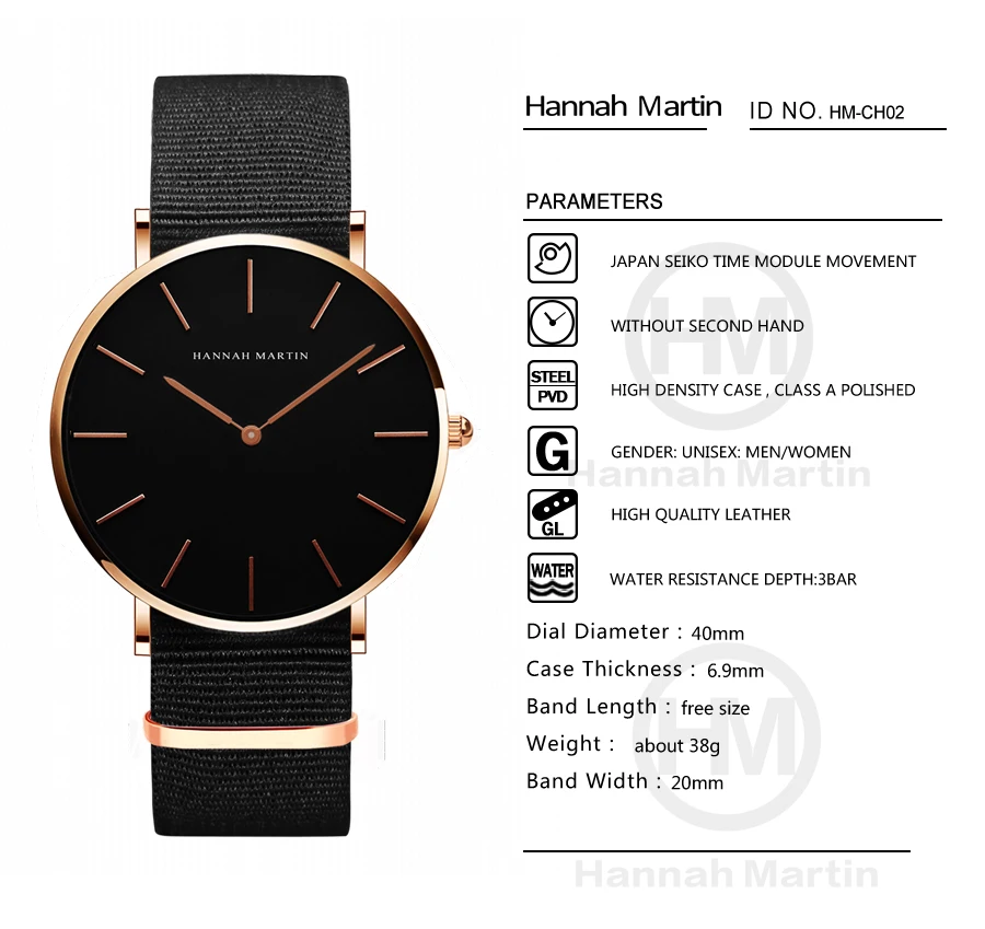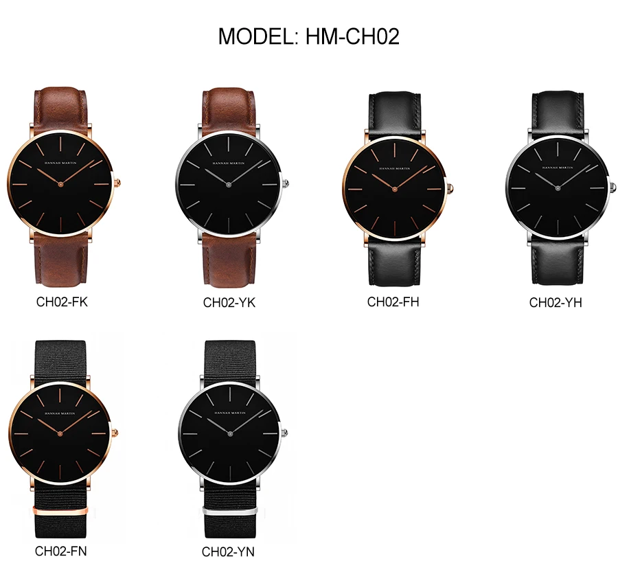 Hannah Martin Ch02 Fashion Luxury Quartz Wrist Watches Minimalist Design Waterproof Watches for Men and Woman Montre Relojes Uhr