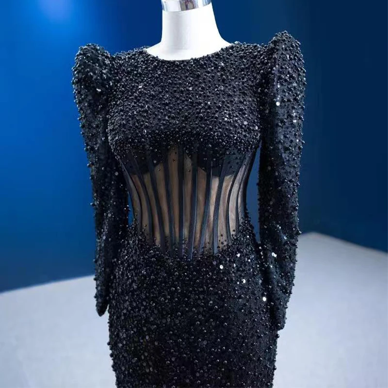 Jancember RSM67553 Sexy Black Illusion Long Sleeve Party Mermaid Evening Gowns Dresses