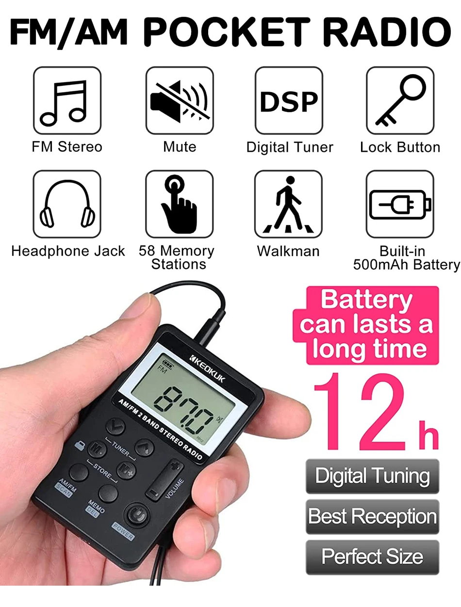 Most Popular Fm Am Digital Mini Portable Digital Display Radio Lithium Battery Usb Charging Small Portable Fm Radio
