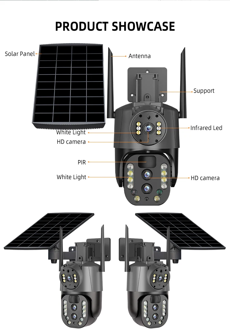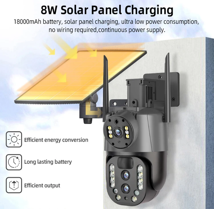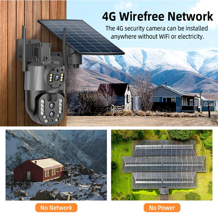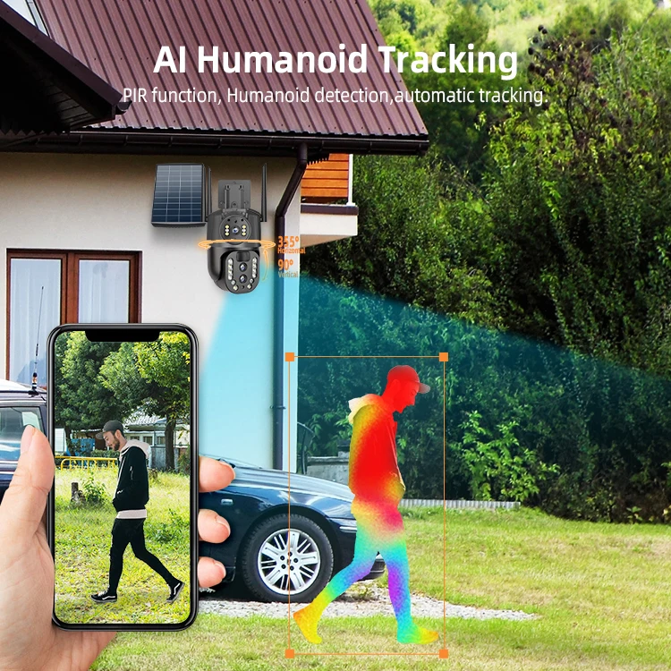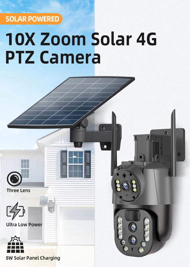 Night Vision 4MP 4G 4K HD 10X Zoom Wireless Outdoor Solar Powered Security IP Human Track 8MP Dual Lens CCTV 4g Solar Ptz Camera