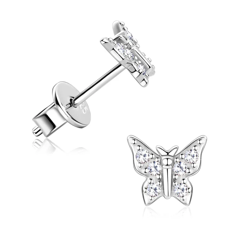 Trendy 925 Sterling Silver Prevent Allergy Level D Shiny Moissanite Butterfly Stud Earrings High Fashion Jewelry Girls