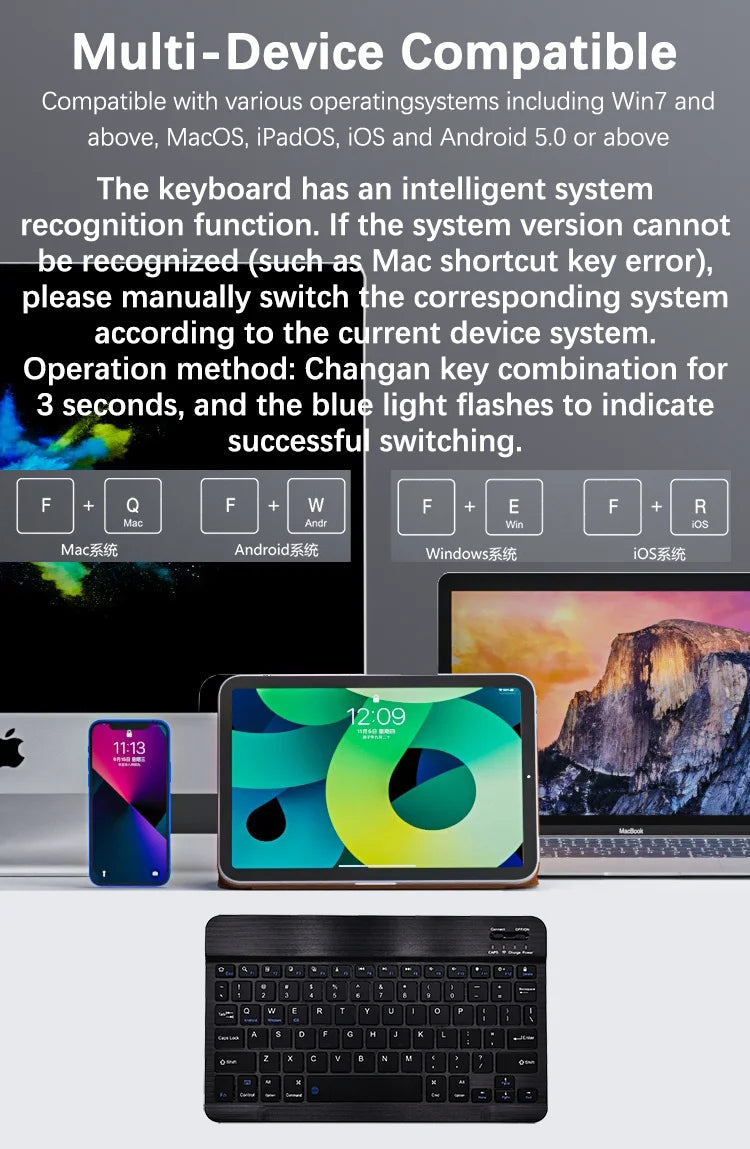 Wireless Bluetooth-compatible Keyboard For Android iOS Tablet Ultra-Thin 78 Keys Rechargeable Portable Compact Design for iPad